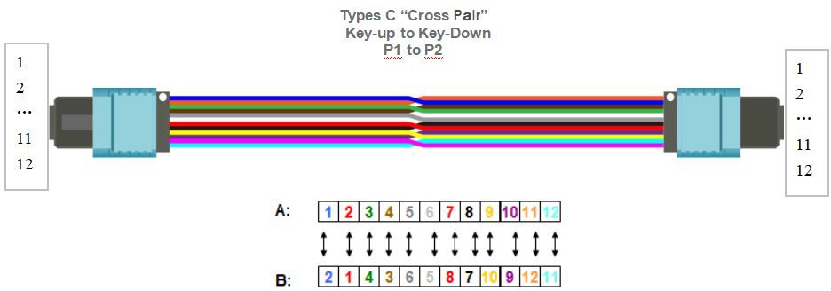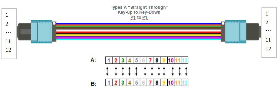 There are three different 12-fiber MPO/MTP-to-MPO/MTP backbone cables defined in the TIA standard. The three different cables: Types A, B and C are used for the three different connectivity Methods A, B and C respectively.